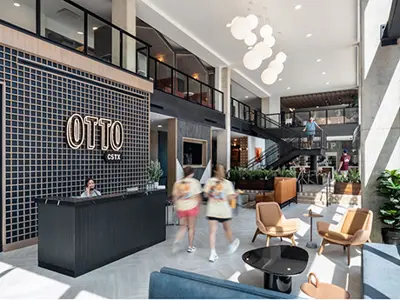 Parallel has completed Otto, a 745-bed student housing development in College Station's Northgate District near the Texas A&M campus. The property offers units in studio through six-bedroom configurations with shared amenities, including a resort-style swimming pool, hot tub, outdoor kitchen, jumbotron, full-service smart market, dog spa, sky lounge, and a luxury fitness and wellness center with a barre and yoga studio and dry saunas.