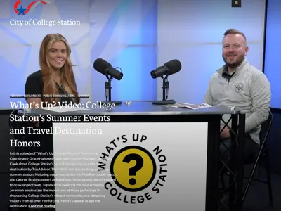 In this episode of “What’s Up, College Station?” Marketing Coordinator Grace Hallowell talks with Tourism Manager Jeremiah Cook about College Station’s recent recognition as a top travel destination by TripAdvisor. They delve into the exciting upcoming summer season, featuring major events like the MexTour soccer match and George Strait's concert at Kyle Field. These events are anticipated to draw large crowds, significantly boosting the local economy. Jeremiah emphasizes the importance of these gatherings in showcasing College Station’s vibrant community and attracting visitors from all over, reinforcing the city’s appeal as a prime destination.